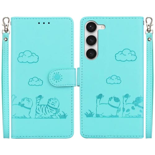 Funda Cuero Rfid Samsung Galaxy S23 5G Diseño Gatos Lindos (Verde)