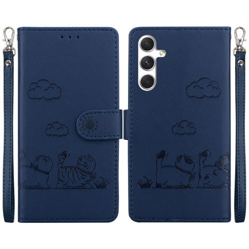 Funda Cuero Rfid Samsung Galaxy S24+ 5G Diseño Gatos (Azul)