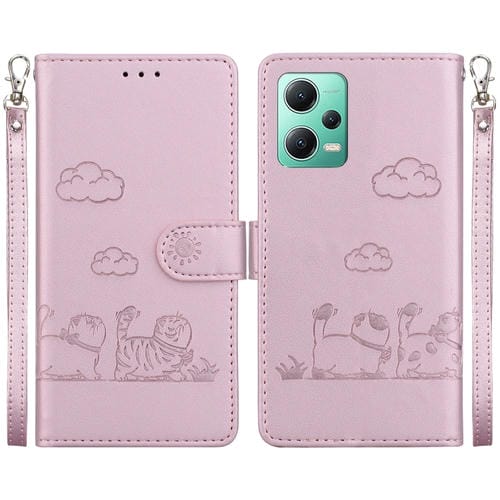 Funda de Cuero Rfid con Diseño de Gatos para Xiaomi Poco X5 (Oro Rosa)