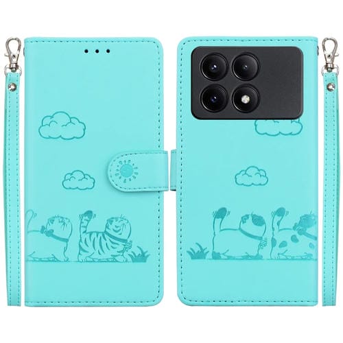 Funda de Cuero Rfid con Diseño de Gatos para Xiaomi Poco X6 Pro (Verde)