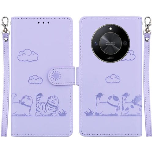 Funda de Cuero Rfid con Diseño de Gatos para Honor X9B y Magic6 Lite (Morado)