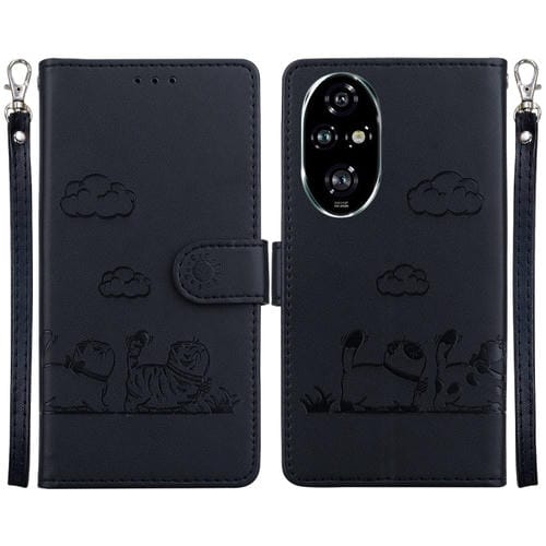 Funda de Cuero Rfid para Honor 200 Pro 5G con Diseño de Gatos (Negra)