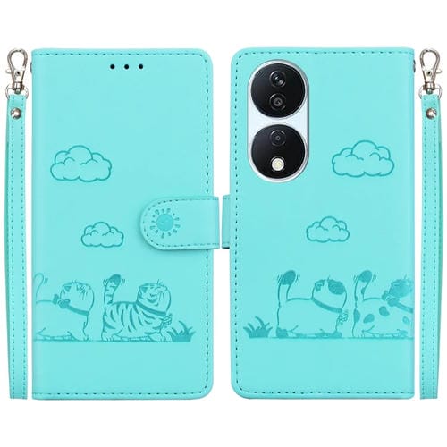 Funda de Cuero Rfid para Honor X7B y Play 50 Plus con Diseño de Gatos (Verde)