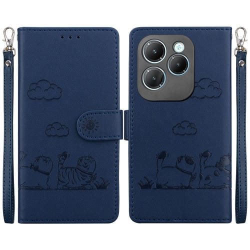 Funda de Cuero Rfid para Infinix Hot 40/40 Pro con Diseño de Gatos (Azul)