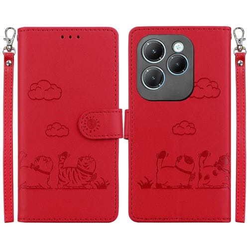 Funda de Cuero Rfid para Infinix Hot 40/40 Pro con Diseño de Gatos (Roja)