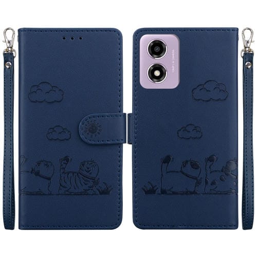 Funda de Cuero Rfid para Motorola Moto G04S/E14 con Diseño de Gatos (Azul)