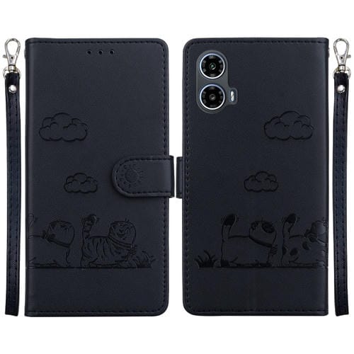 Funda de Cuero Rfid para Motorola Moto G34 5G con Diseño de Gatos (Negra)