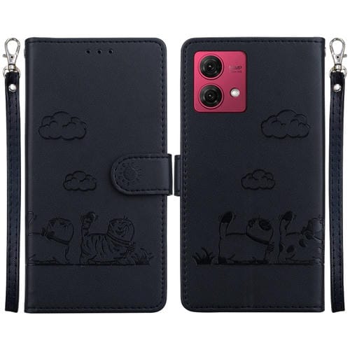 Funda de Cuero Rfid para Motorola Moto G84 con Diseño de Gatos (Negra)