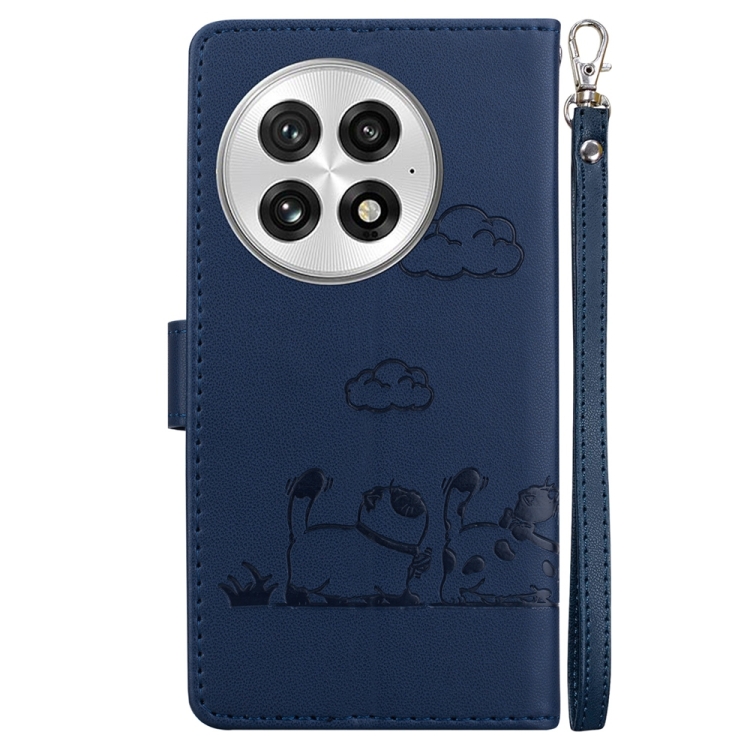 Funda de Cuero Rfid con Diseño de Gatos para OnePlus 13 (Azul)