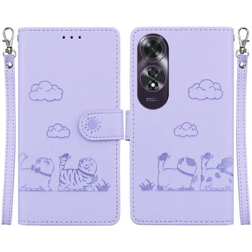 Funda de Cuero Rfid con Diseño de Gatos para Oppo A60 4G (Morada)