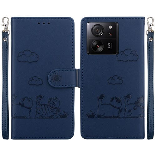 Funda de Cuero Rfid con Diseño de Gatos para Xiaomi 13T/13T Pro (Azul)
