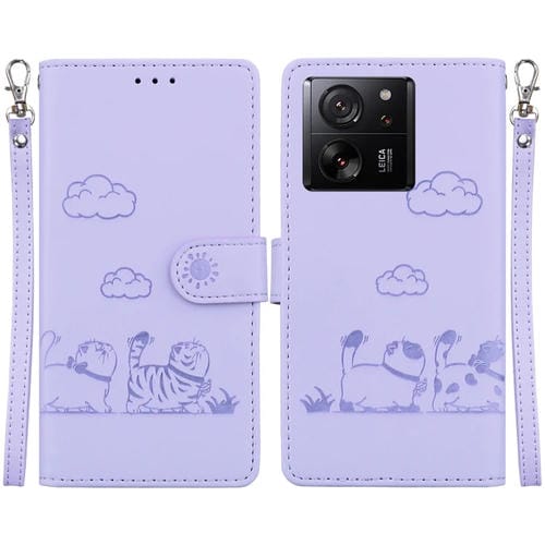 Funda de Cuero Rfid con Diseño de Gatos para Xiaomi 13T/13T Pro (Morada)