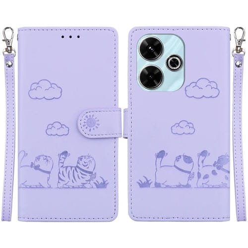 Funda de Cuero Rfid con Diseño de Gatos para Xiaomi Poco M6 4G (Morada)