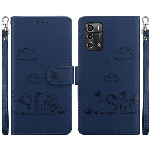 Funda de Cuero Rfid para ZTE Blade A72 y V40 Vita con Diseño de Gatos (Azul)