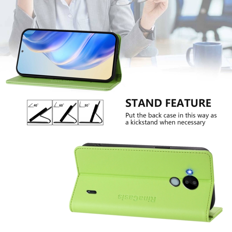 Funda de Cuero Rfid para Nokia C30 Rc01 con Doble Pliegue y Succión Magnética (Verde Hierba)