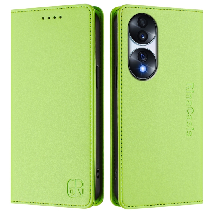 Funda de Cuero RFID con Doble Pliegue y Succión Magnética para Honor 70 Rc01 (Verde Hierba)