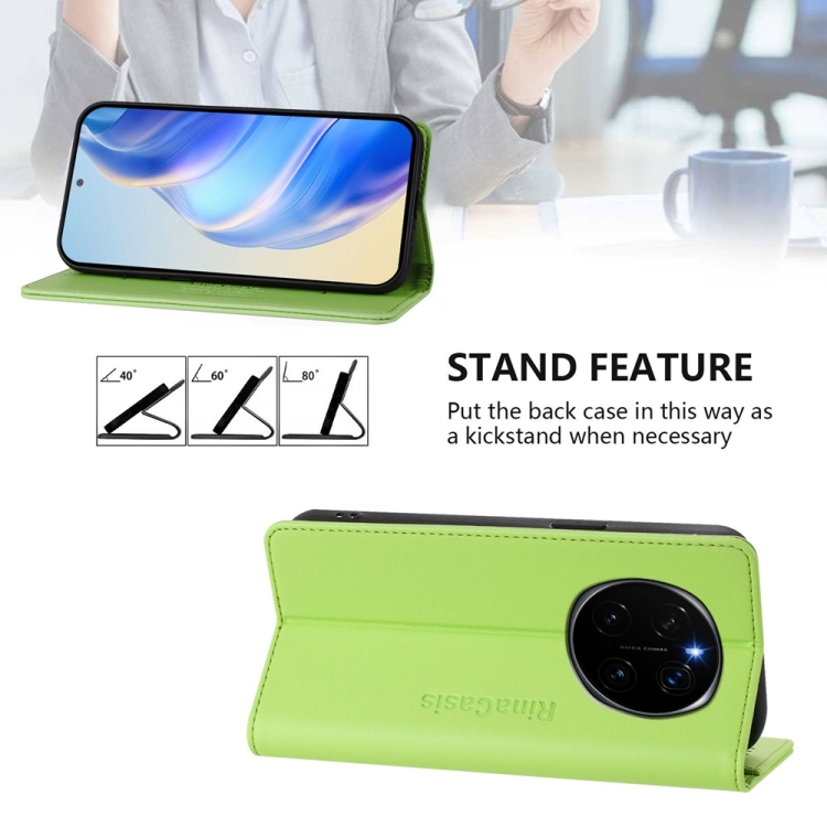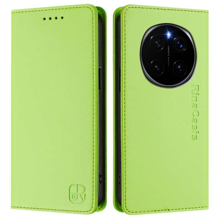 Funda de Cuero Rfid con Doble Pliegue y Succión Magnética para Honor Magic7 Rc01 (Verde Hierba)