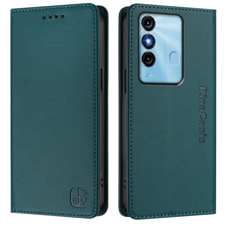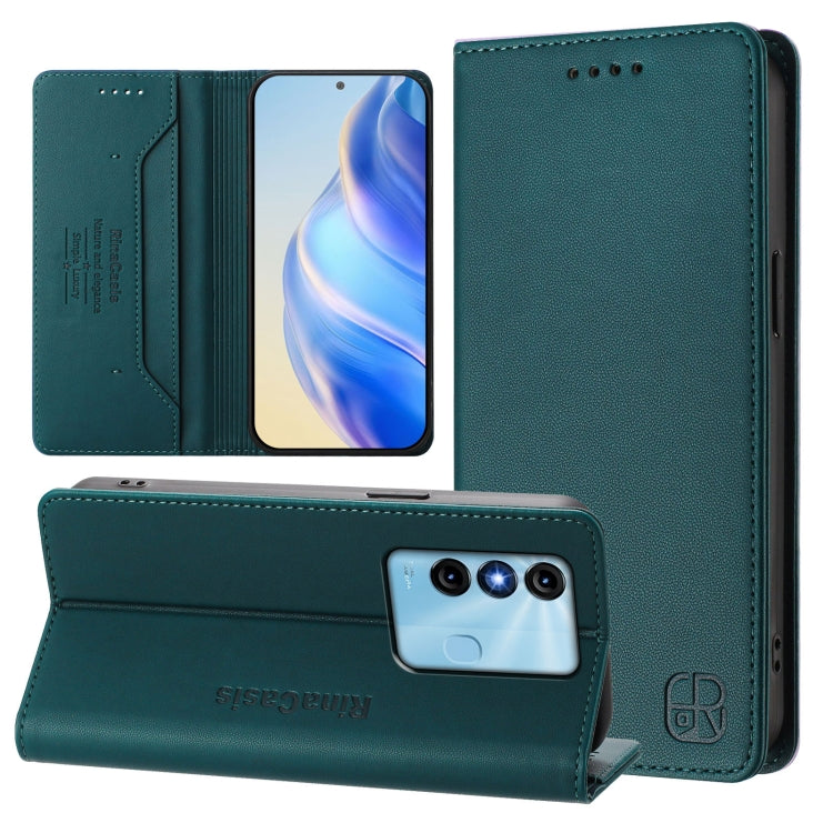 Funda de Cuero Rfid con Doble Pliegue y Succión Magnética para Itel P38/S17/Vision 3 Rc01 (Verde Oscuro)