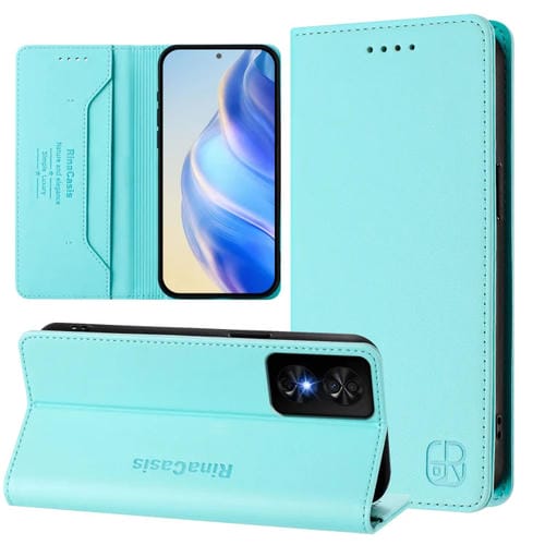 Funda de Cuero Rfid para Teléfono TCL 50 Se Rc01 con Doble Pliegue y Succión Magnética (Verde Menta)