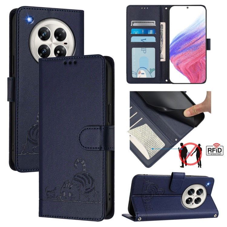 Funda Cuero Rfid para Infinix Zero 40 4G/5G con Cordón Estampado Rata y Gato (Azul)