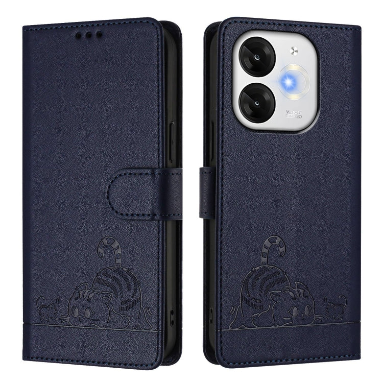 Funda de Cuero Rfid para Teléfono Itel A80 4G con Estampado de Rata y Gato y Cordón (Azul)