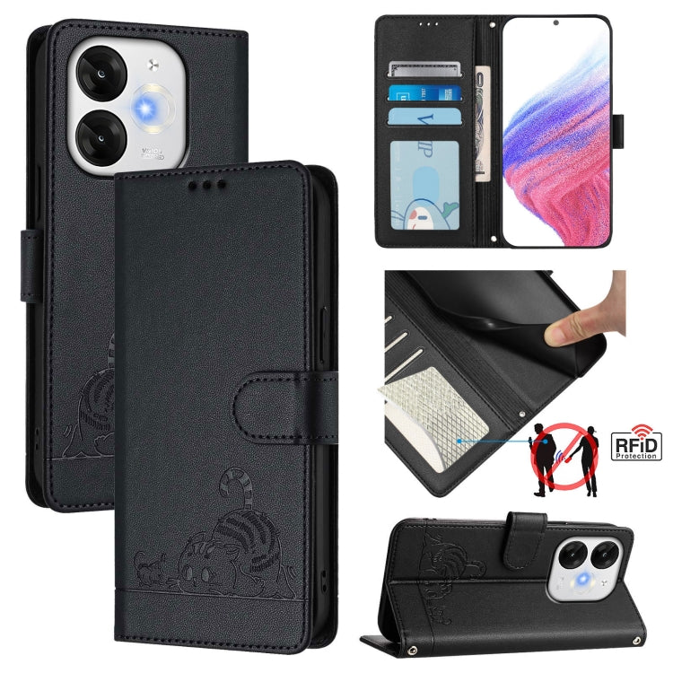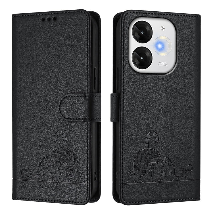 Funda de Cuero Rfid Itel A80 4G con Estampado de Rata y Gato y Cordón (Negro)