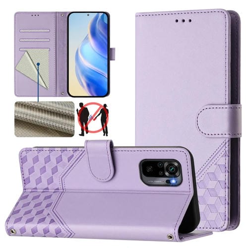 Funda de Cuero Rfid con Relieve de Panal de Abeja para Redmi Note 10 4G / 10S 4G / 11 Se (Morado Claro)