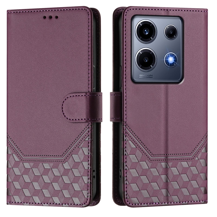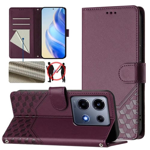 Funda de Cuero Rfid con Relieve de Panal para Infinix Note 30 Vip (Violeta)
