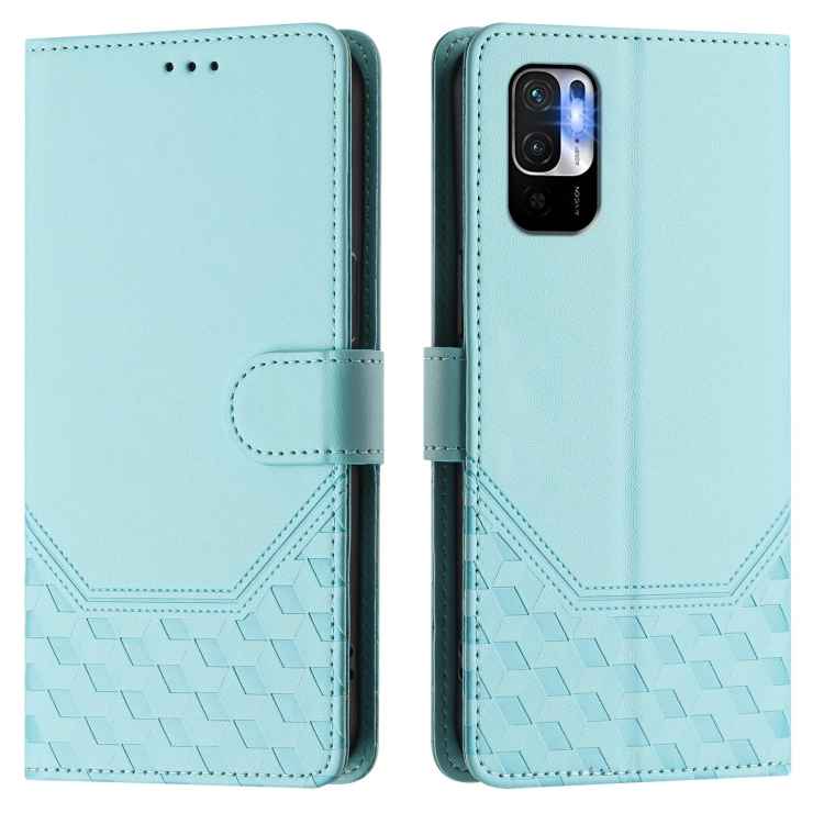 Funda de Cuero Rfid con Relieve de Panal para Redmi Note 10 5G/Note 10T 5G (Verde Menta)