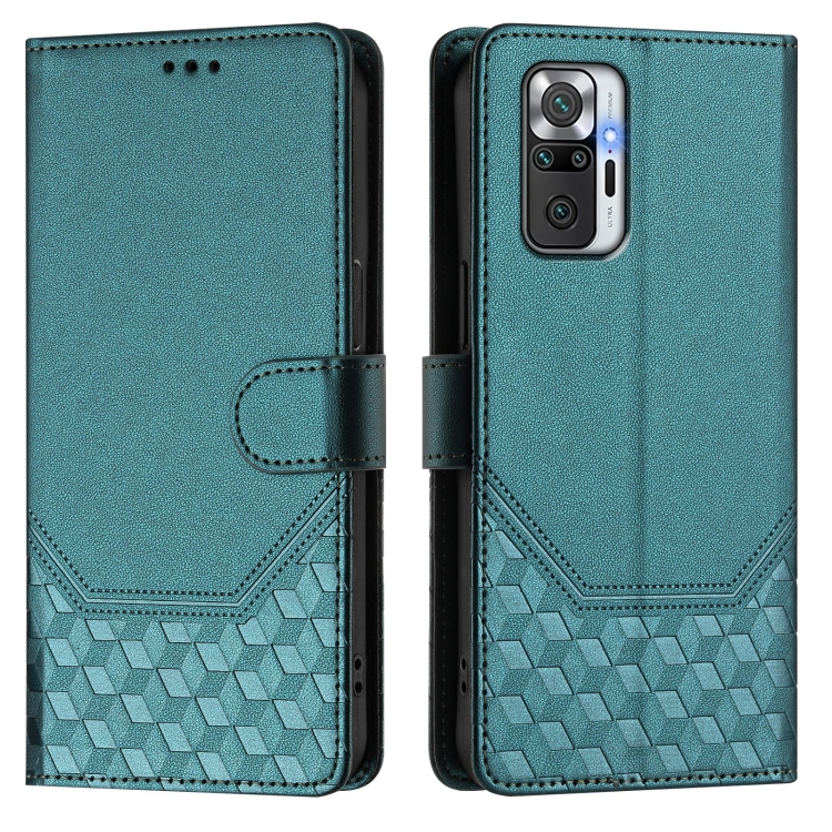 Funda de Cuero Rfid con Relieve de Panal para Redmi Note 10 Pro 4G/Note 10 Pro Max (Verde Pavo Real)