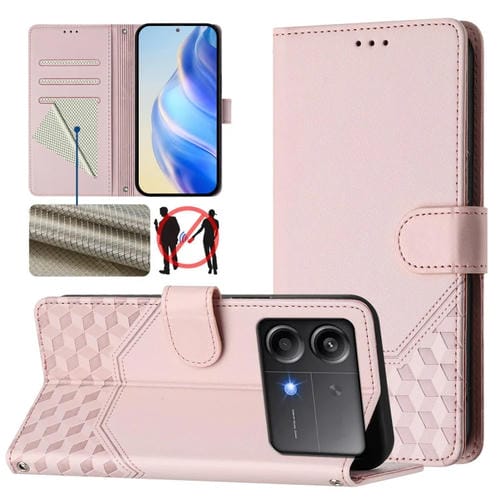 Funda de Cuero Rfid con Relieve de Panal para Xiaomi Poco X6 Neo 5G (Rosa)