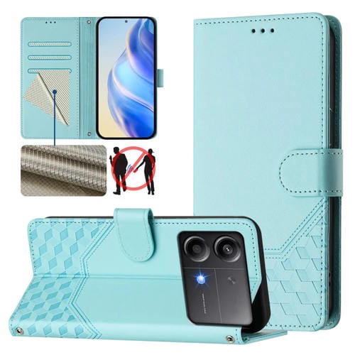 Funda de Cuero Rfid con Relieve de Panal para Xiaomi Poco X6 Neo 5G (Verde Menta)