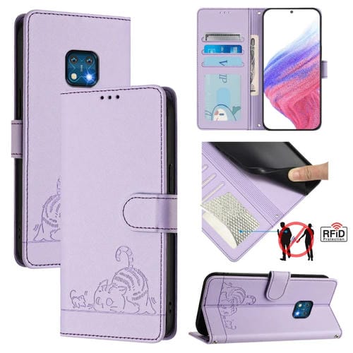 Funda de Cuero Rfid para Nokia Xr20 con Relieve de Rata y Gato y Cordón (Morado)