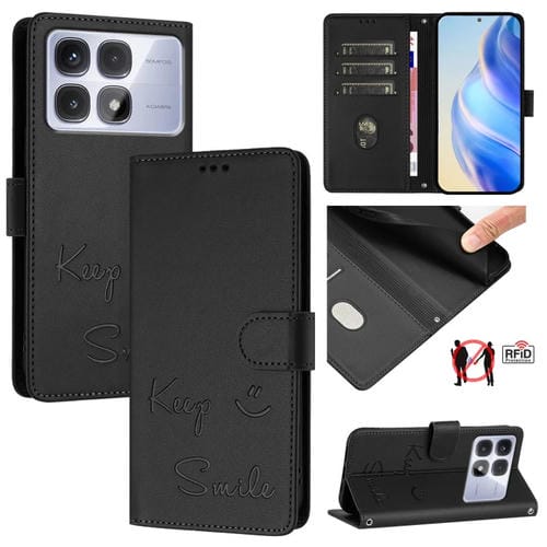 Funda de Cuero Rfid con Relieve de Sonrisa Global para Redmi K70 Ultra 5G (Negra)