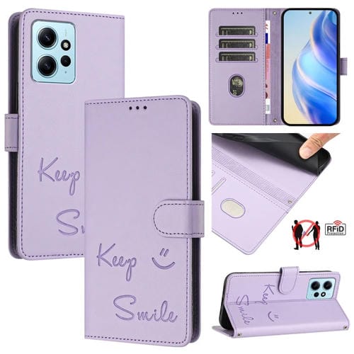 Funda de Cuero Rfid con Relieve de Sonrisa Global para Redmi Note 12 4G (Morado Claro)
