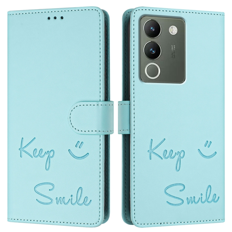 Funda de Cuero Rfid con Relieve de Sonrisa Global para Vivo V29E 5G (Verde Menta)
