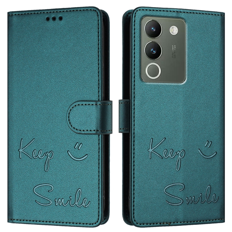 Funda de Cuero Rfid con Relieve de Sonrisa Global para Vivo V30 Lite 5G (Verde Pavo Real)