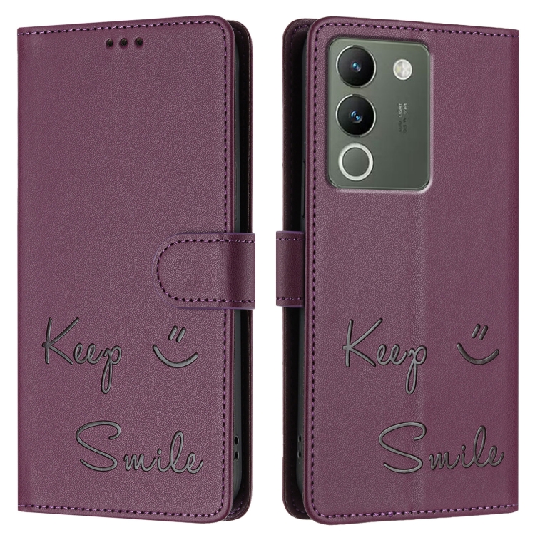 Funda de Cuero Rfid con Relieve de Sonrisa Global para Vivo V30 Lite 5G (Violeta)