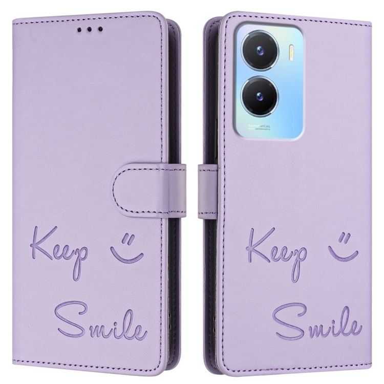 Funda de Cuero Rfid con Relieve de Sonrisa Global para Vivo Y16 4G (Morado Claro)