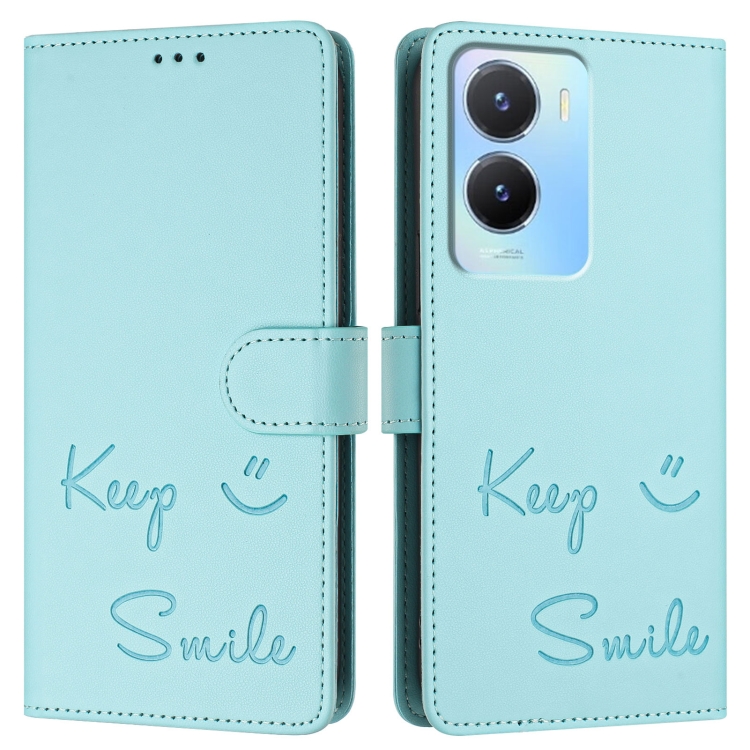 Funda de Cuero Rfid con Relieve de Sonrisa Global para Vivo Y16 4G (Verde Menta)