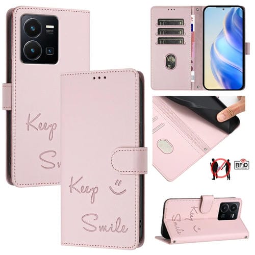 Funda de Cuero Rfid con Relieve de Sonrisa Global para Vivo Y22 4G (Rosa)