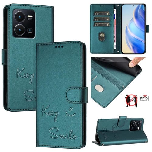 Funda de Cuero Rfid con Relieve de Sonrisa Global para Vivo Y22S 4G (Verde Pavo Real)