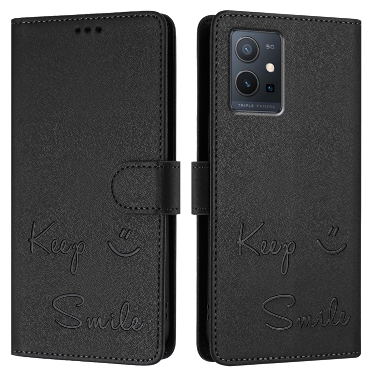 Funda de Cuero Rfid con Relieve de Sonrisa Global para Vivo Y75 5G (Negra)