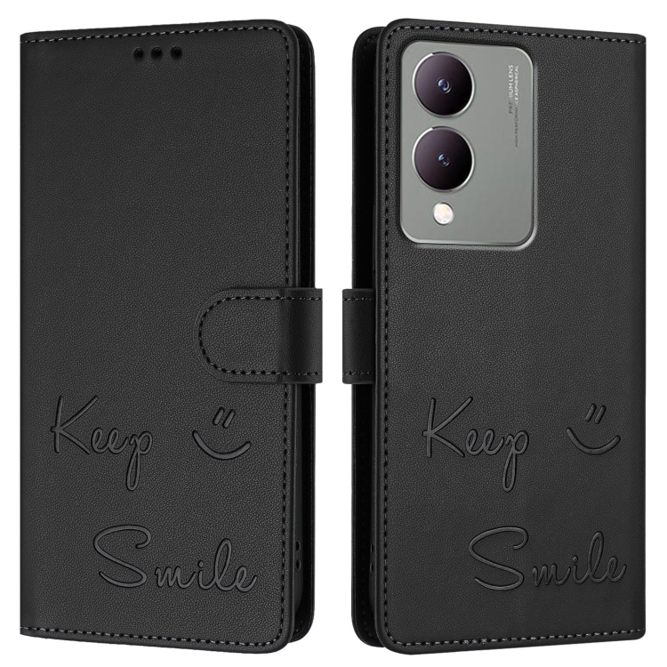 Funda de Cuero Rfid con Relieve de Sonrisa India para Vivo Y17S 5G (Negra)