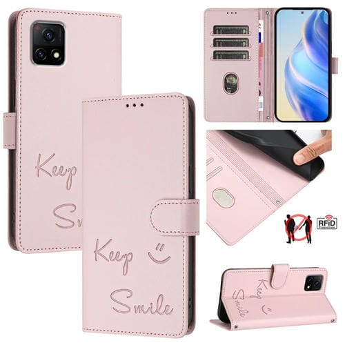 Funda de Cuero Rfid con Relieve de Sonrisa India para Vivo Y31S 5G/Y72 5G (Rosa)