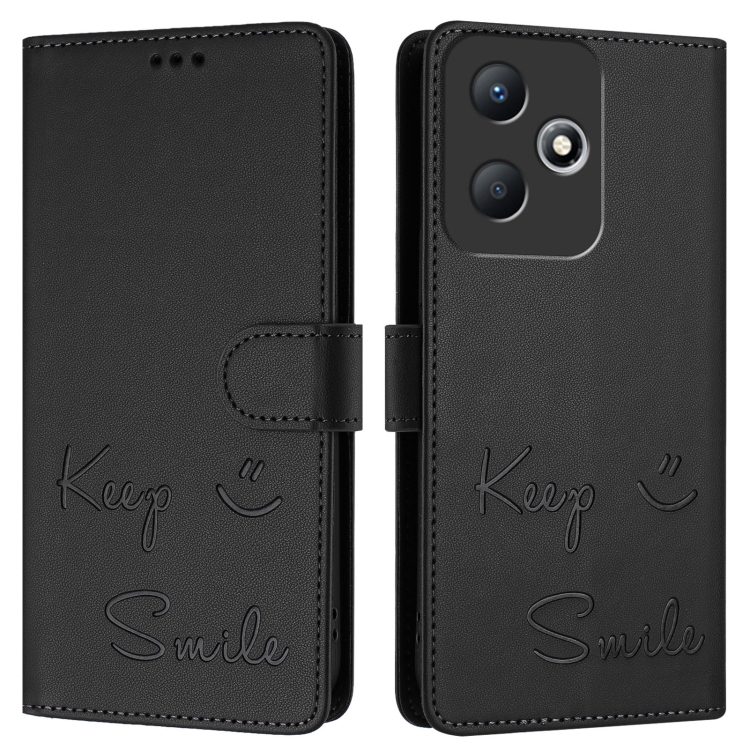 Funda de Cuero Rfid con Relieve de Sonrisa Nfc para Infinix Hot 30 Play (Negra)