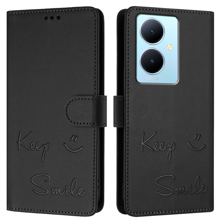 Funda de Cuero Rfid con Relieve de Sonrisa para Vivo Y78 5G Global / V29 Lite (Negra)