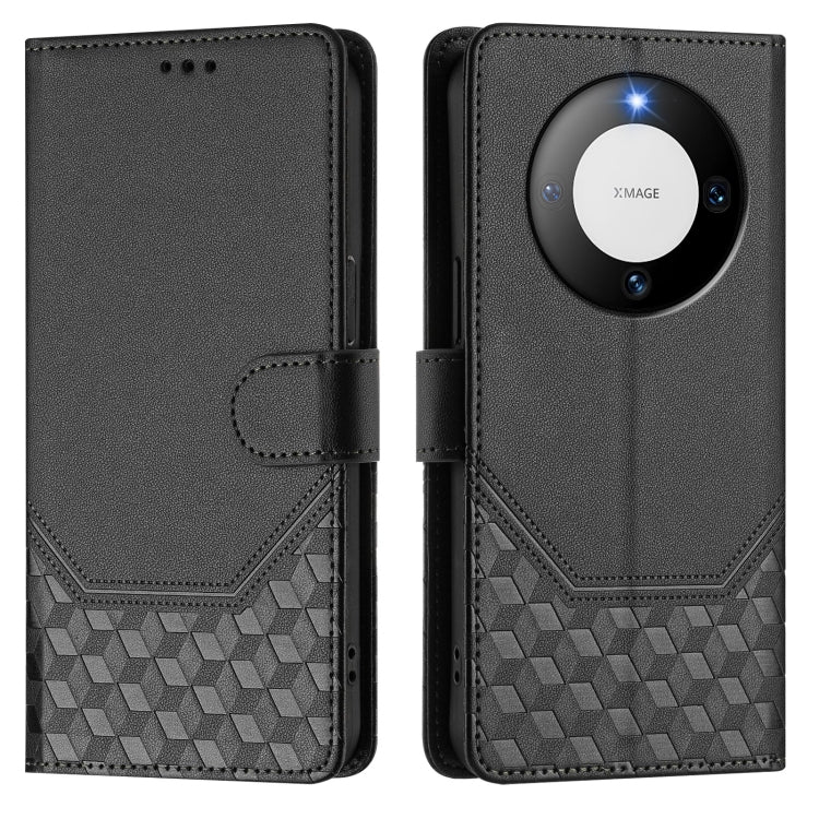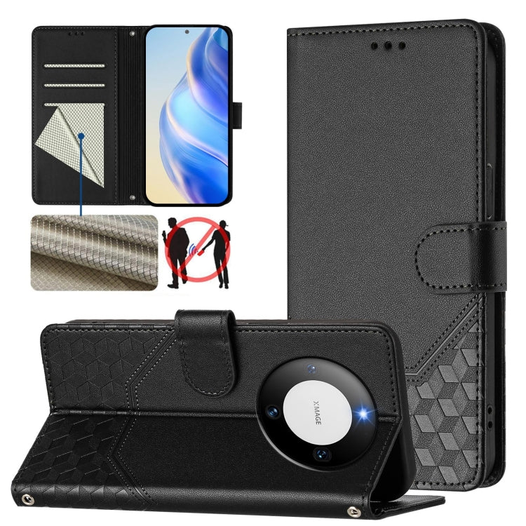 Funda de Cuero Rfid con Relieve en Panal para Huawei Mate 60 (Negra)