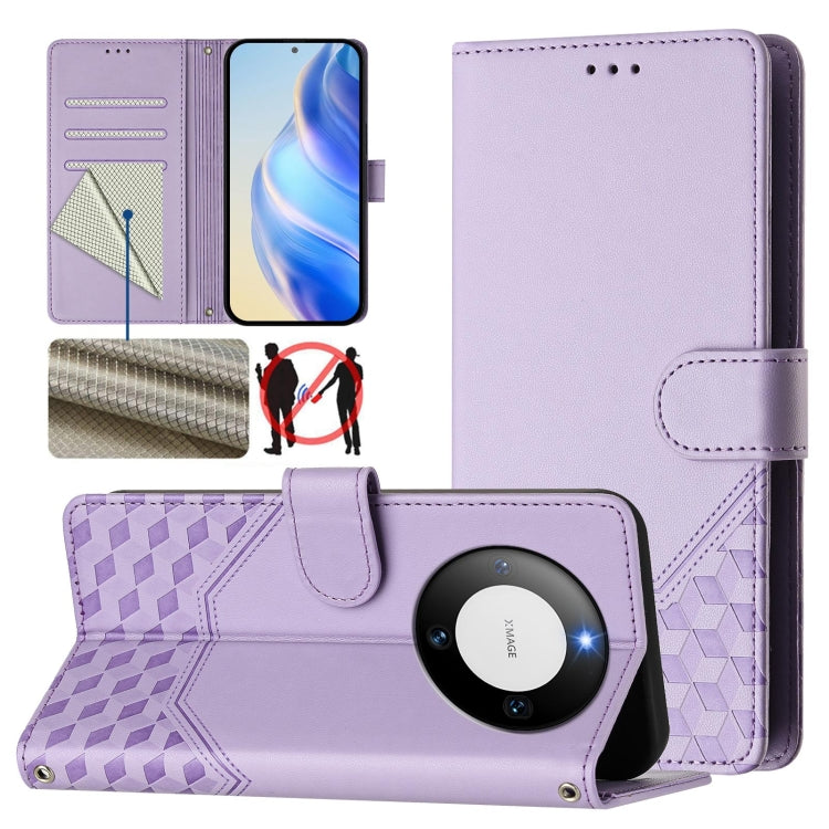 Funda de Cuero Rfid con Relieve en Panal para Huawei Mate 60 Pro y Mate 60 Pro+ (Morado Claro)