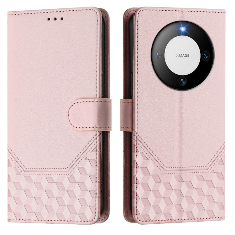 Funda de Cuero Rfid con Relieve en Panal para Huawei Mate 60 (Rosa)